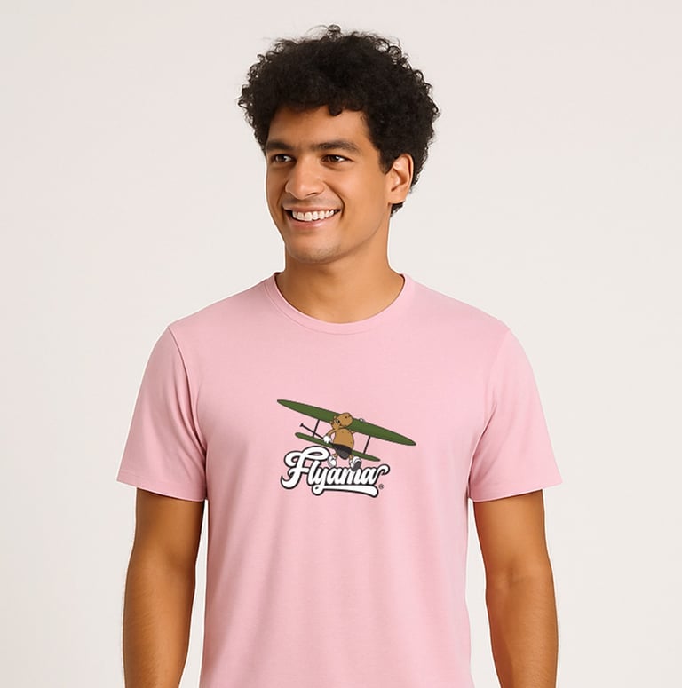 Além dos bonés, não podemos esquecer da camiseta estonada na cor rosa, que é perfeita para as pessoas que buscam conforto e estilo ao mesmo tempo. Essa peça é casual, leve e perfeita para aqueles dias de calor em Brasília, ideal para combinar com o nosso boné e se juntar ao estilo Flyama!